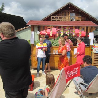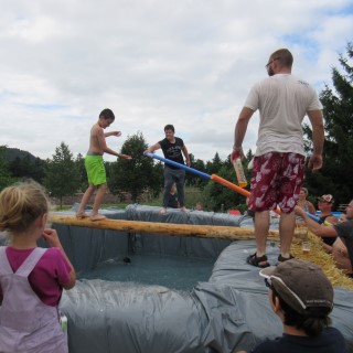 du gobelet, concours d'apnée et pour terminer le ventriglisse. Ce sont 5 équipes (du genre, les locaux, les roumains, les filles d'occasion, etc.) qui se sont affrontées à travers ces différentes épreuves, dans une ambiance digne d'une journée plage au bord de l'eau. Les animateurs de service ont su diriger cela d'une main de maître.