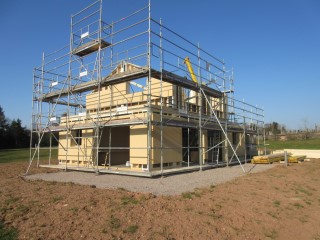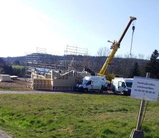 Après des travaux de préparation en début d'année, un échafaudage renversé par la tempête, aujourd'hui, une entreprise est venue déposé une maison en kit (passiv'home).