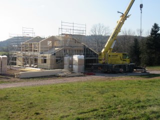 Aussitôt grue et ouvriers se sont mis au travail et en l'espace de 2 jours la maison à pris forme,